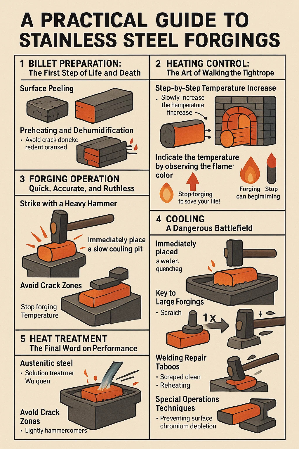 Pysäytä taonta lämpötila: Austeniittinen teräs ≥850 ° C, martensiittinen teräs ≥950 ° C (tämän lämpötilan alapuolella taonta väistämättä halkeilee).