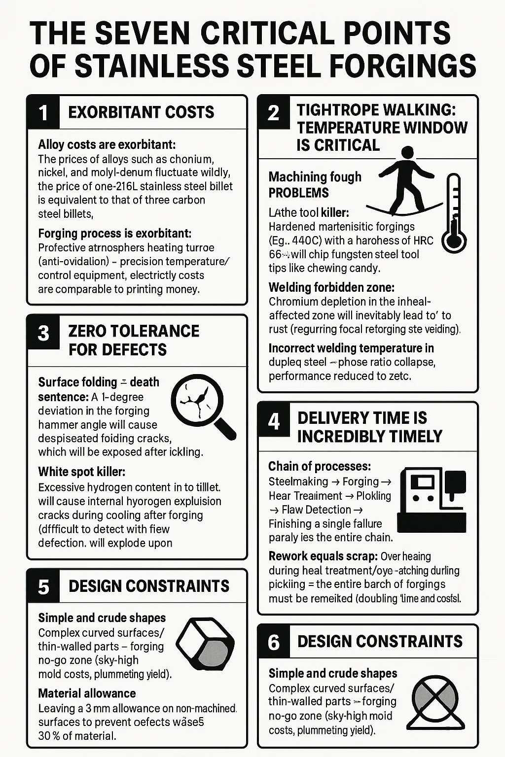Seitsemän kriittistä pistettä Taotut ruostumattomasta teräksestä