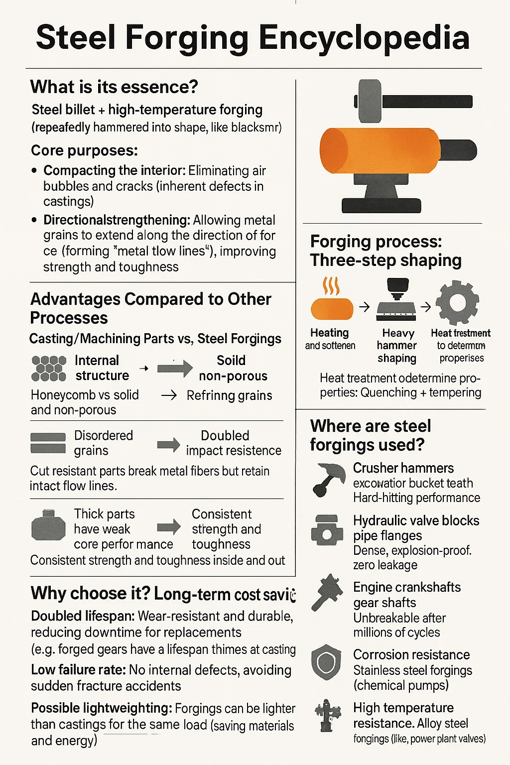 Raskas vasaran muotoilu: Toistuva vasarointi pneumaattisella vasaralla/hydraulisella puristimella muotojen, kuten hammaspyörien ja akselin päiden, luomiseksi.